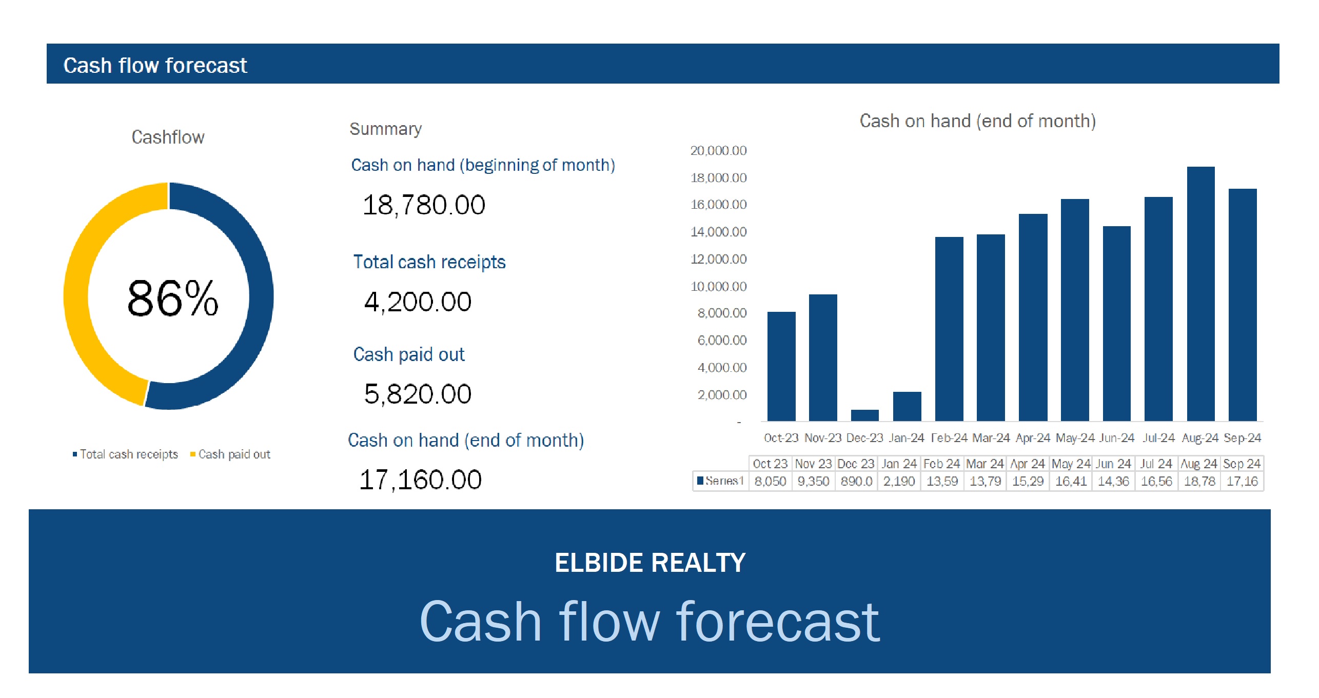 Banyak orang membuat perkiraan arus kas dalam spreadsheet, dan Anda akan menemukan templat perkiraan arus kas siap pakai di Perangkat Bisnis Kecil gratis kami . Jika Anda menggunakan perangkat lunak akuntansi cloud , Anda mungkin menemukan fitur tersebut sudah ada di dalamnya, mungkin dalam bentuk laporan atau dasbor.